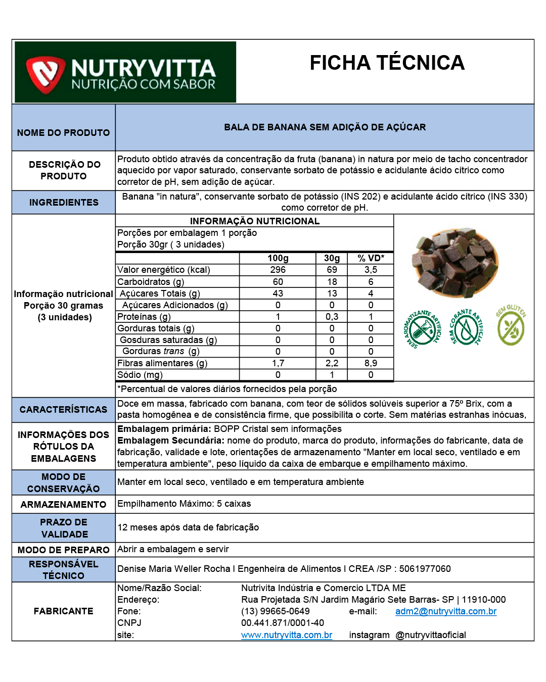 BALA DE BANANA ZERO AÇÚCAR NUTRYVITTA – PACOTES.